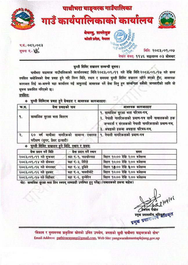 » घुम्ती शिविर सञ्चालन सम्बन्धी सूचना।