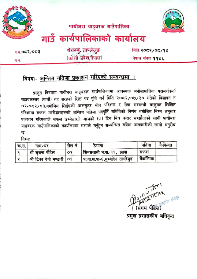 मनोसामाजिक परामर्शदाताको परीक्षाको अन्तिम नतिजा प्रकाशन गरिएको सूचना।