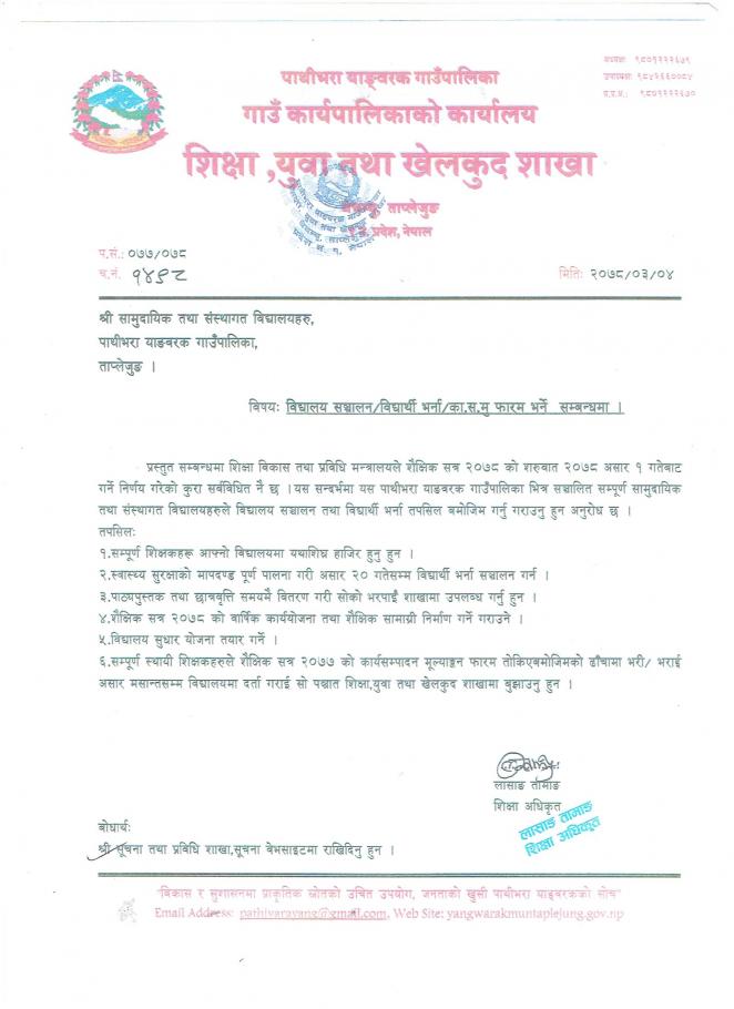 विद्यालय संचालन / विद्यालय भर्ना / का.स.मु फारम भर्ने सम्बन्धमा |