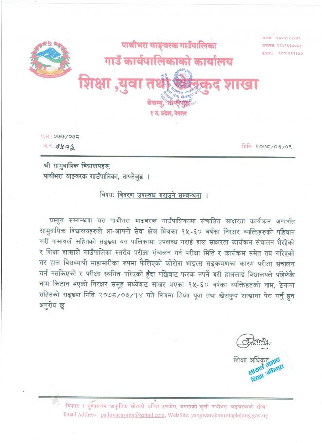 विवरण उपल्वध गराउने सम्वन्धमा ( सबै सामुदायिक विधालयहरु)