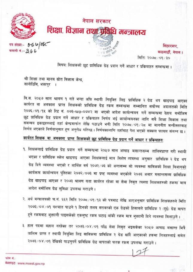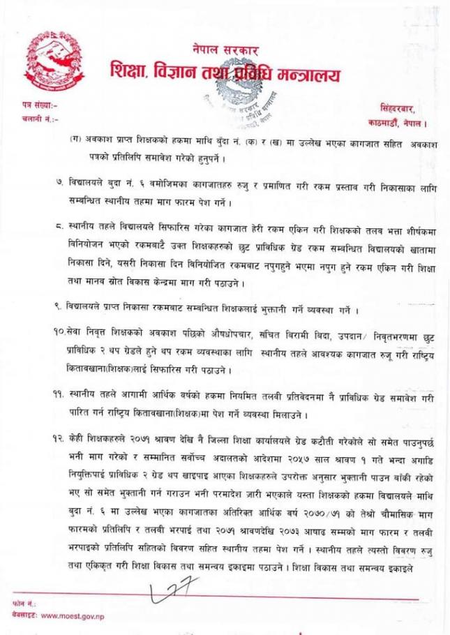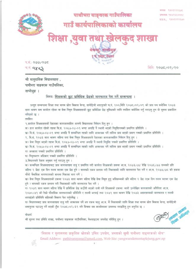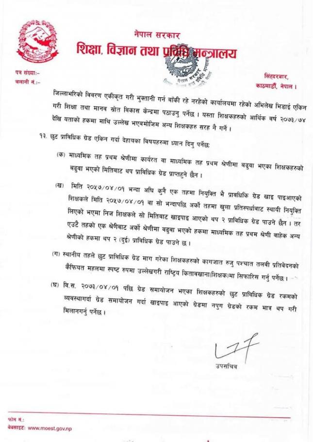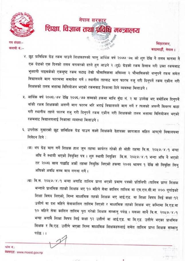 » शिक्षकको छुट प्राविधिक ग्रेडको मागफारम पेश गर्ने सम्बन्धमा ||