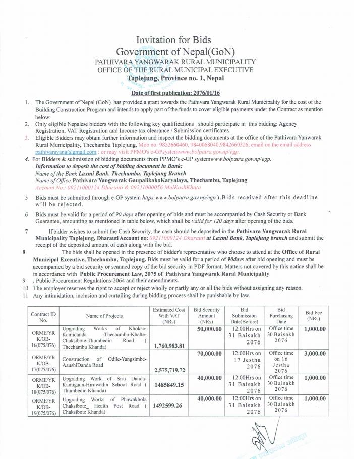 सार्वजनिक खरिद/बोलपत्र सूचना