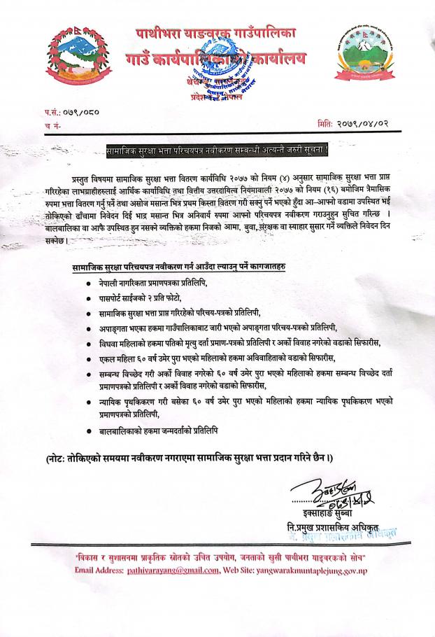 » सामाजिक सुरक्षा भत्ता परिचयपत्र नवीकरण सम्बन्धी अत्यन्तै जरुरी सूचना |