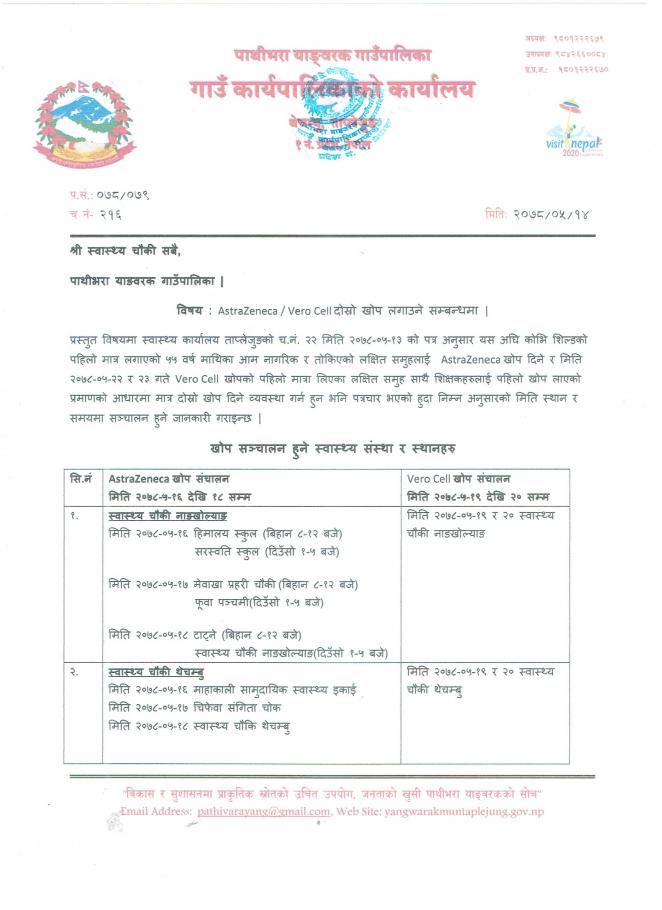 AstraZeneca / Vero cell दोस्रो खोप लगाउने सम्बन्धमा |