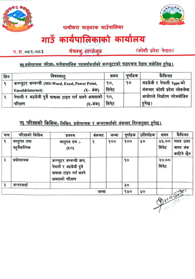 मनोसामाजिक परामर्शदाताको परीक्षाको अन्तिम नतिजा प्रकाशन गरिएको सूचना।