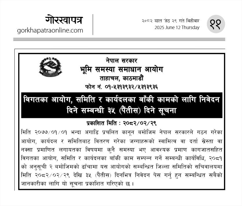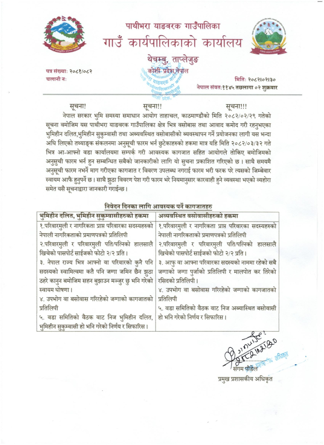 भुमिहिन दलित,भुमिहिन सुकुम्बासी तथा अव्यवस्थित बसोबासिका लागि फारम भर्ने सम्बन्धि सुचना ।