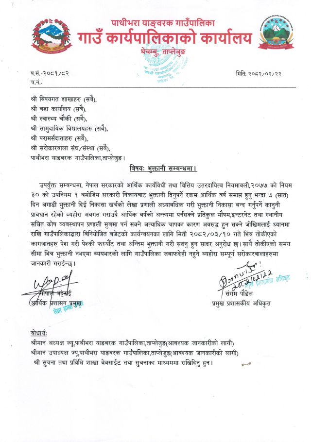 समयमा भुक्तानी लिईसक्ने बारे सूचना ।
