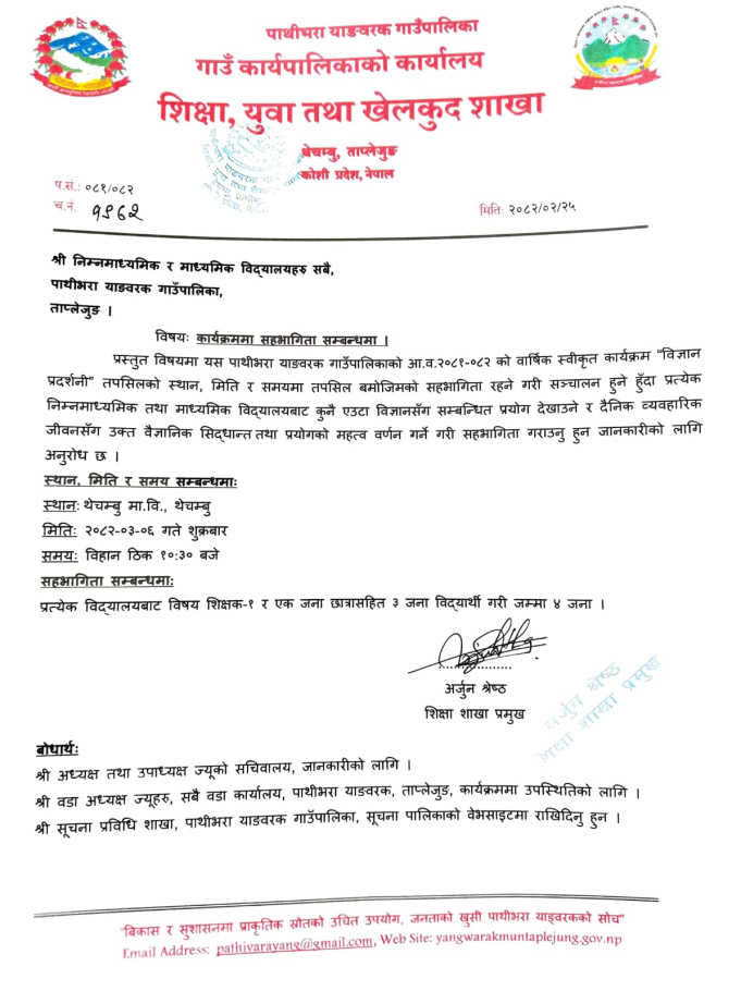 कार्यक्रममा सहभागी हुनेबारे सूचना ।