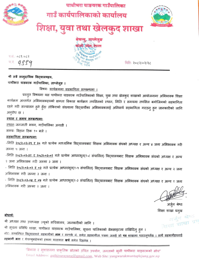 अभिभावक शिक्षा कार्यक्रममा सहभागी हुनेबारे सुचना ।