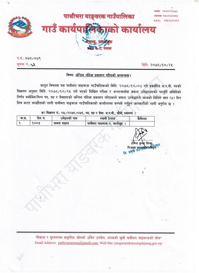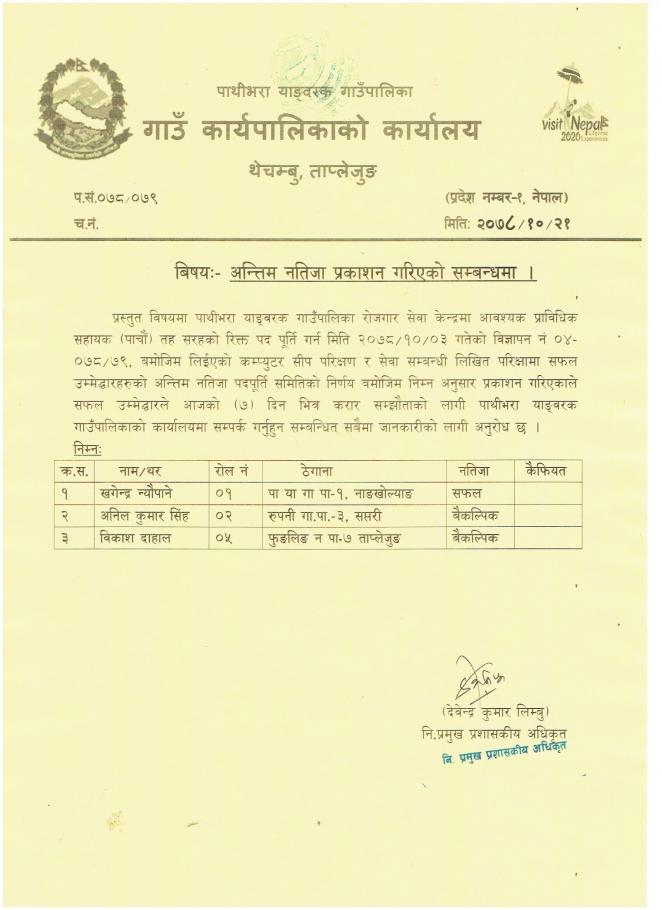 अन्तिम नतिजा प्रकाशन गरिएको सम्बन्धमा ।