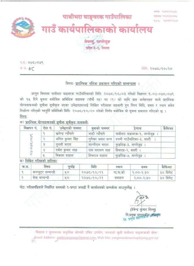 नतिजा प्रकाशन गरिएको सम्बन्धमा ।