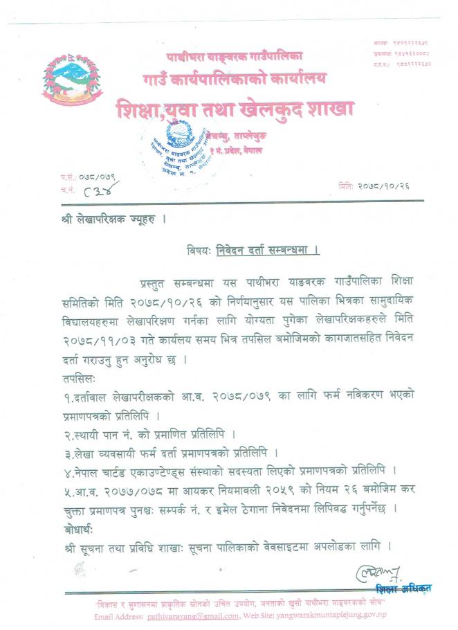 लेखा परीक्षकको नियुक्तिपत्र बुझ्न आउने सम्बन्धमा।