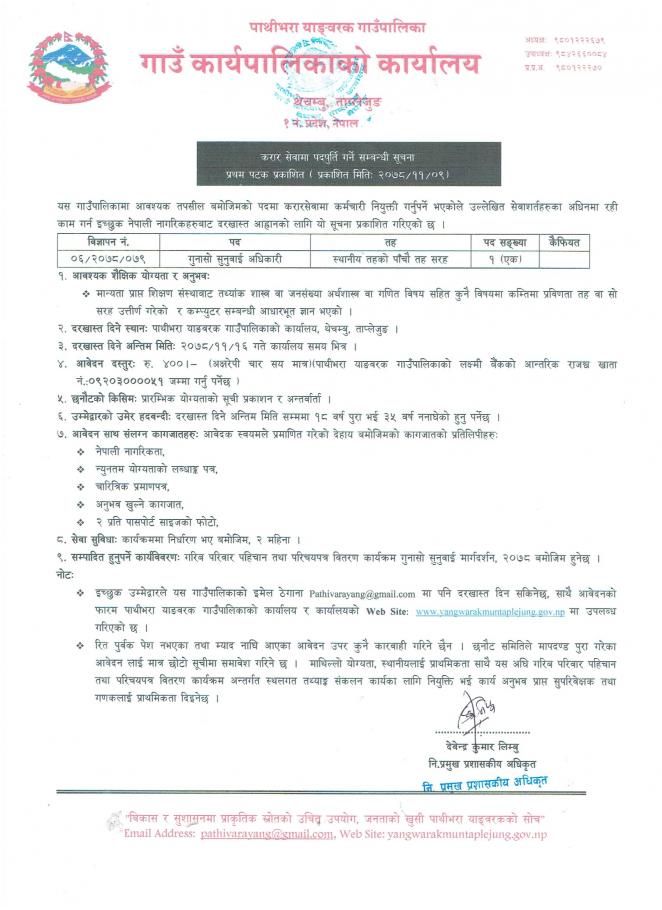 करार सेवामा पदपुर्ति गर्ने सम्बन्धी सूचना ।