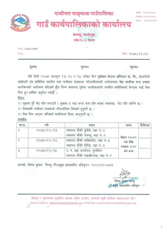 सूचना टाँस गर्ने सम्बन्धमा ।
