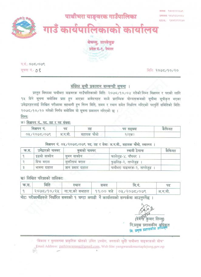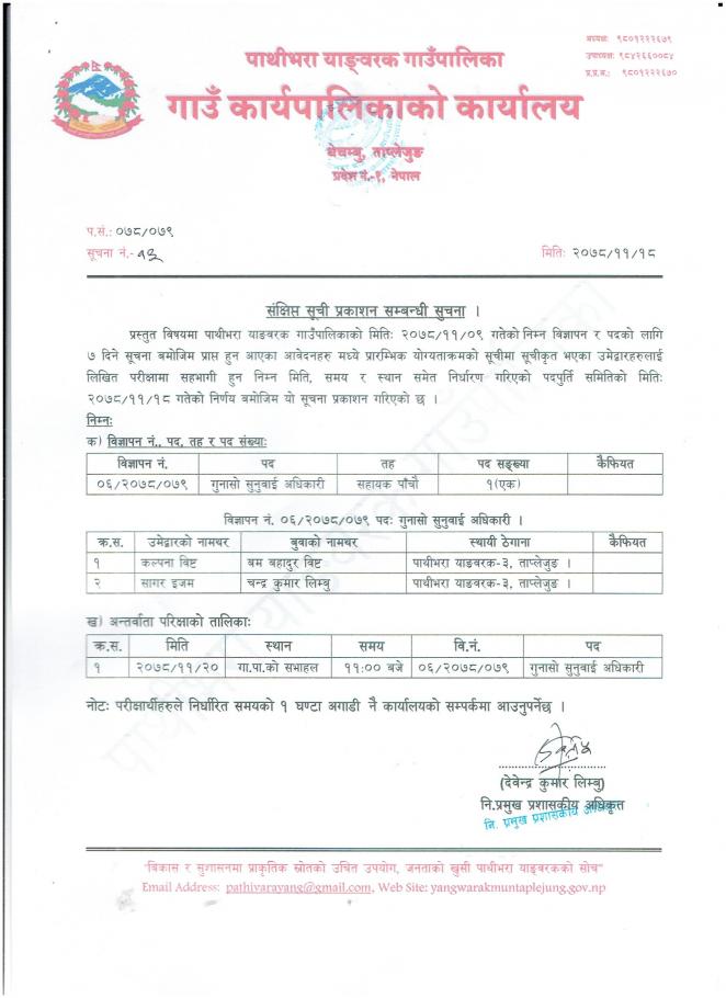 मनोसामाजिक परामर्शदाताको विज्ञापनका लागि संक्षिप्त सूची प्रकाशित गरिएको सूचना ।