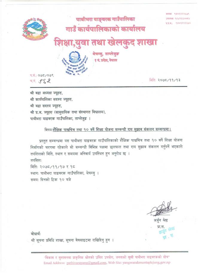 शैक्षिक पार्श्वचित्र तथा १० वर्षे शिक्षा योजना राय सुझाव संकल्न सम्बन्धमा ।
