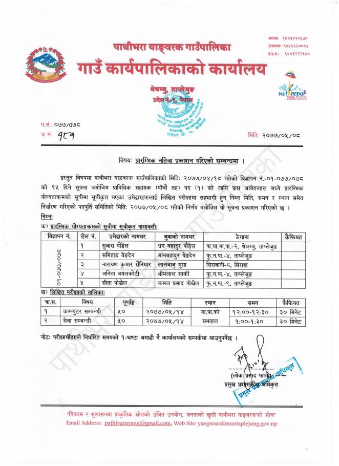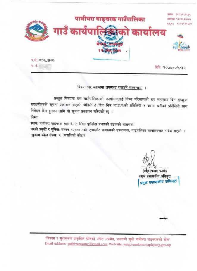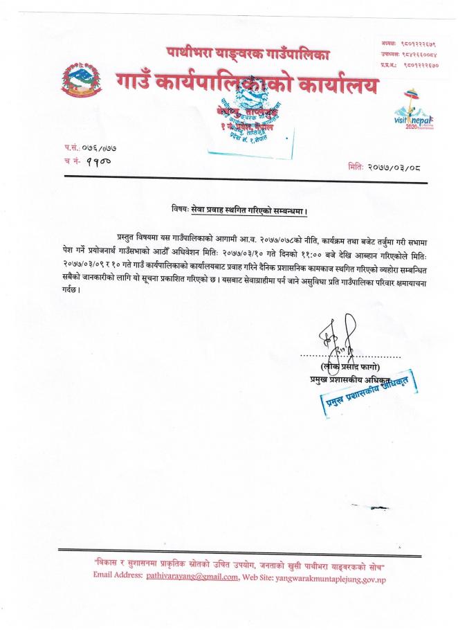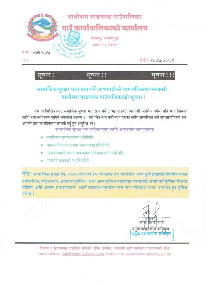सामाजिक सुरक्षा भत्ता प्राप्त गर्ने लाभ्रगाहीको नाम नविकरण सम्बन्धी पाथीभरा याङवरक गाउँपालिकाको सूचना !