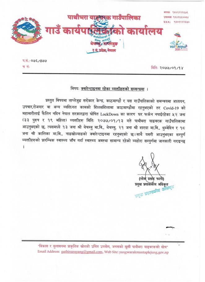 क्वारेन्टाइनमा रहेका व्यक्तीहरुको सम्बन्धमा ।