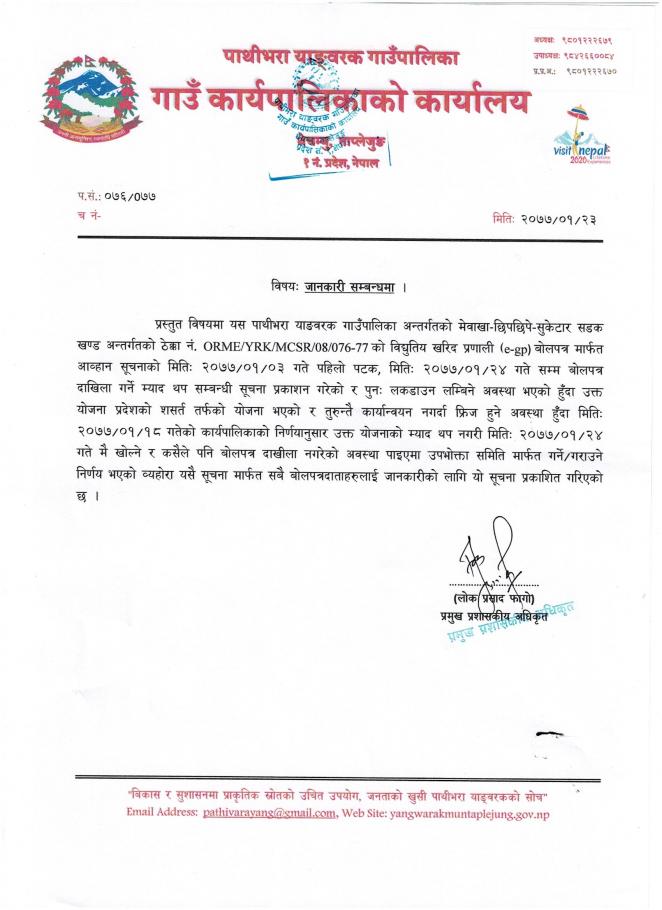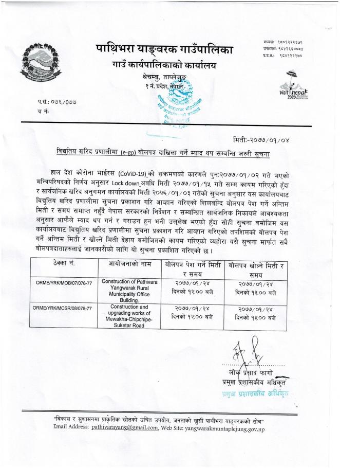 विद्युतिय खरिद प्रणालीमा (e-gp) बोलपत्र दाखिला गर्ने म्याद थप गर्ने सम्बन्धमा ।