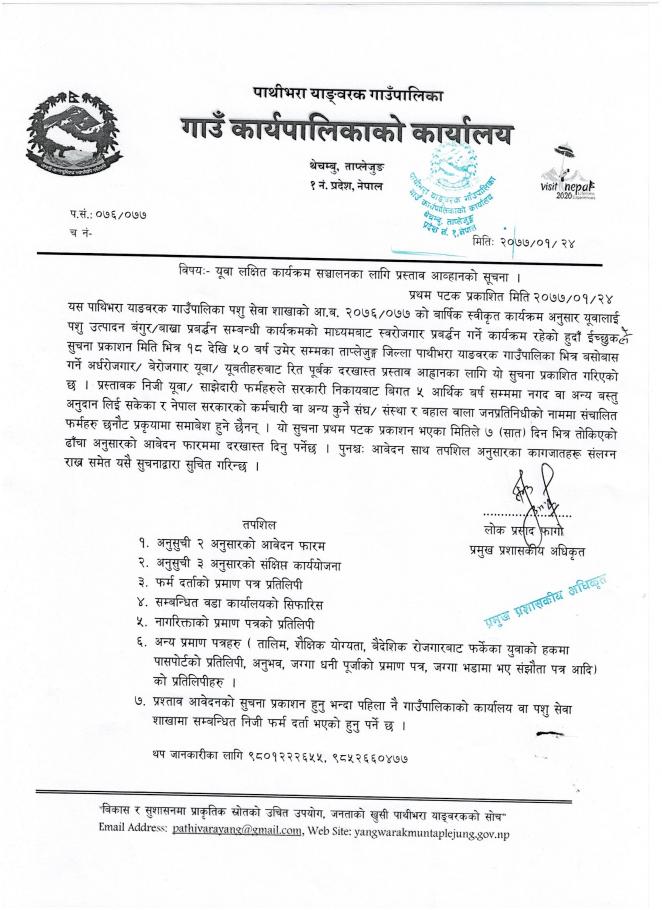 यूवा लक्षित कार्यक्रम सञ्चालनका लागि प्रस्ताव आव्हानको सूचना ।