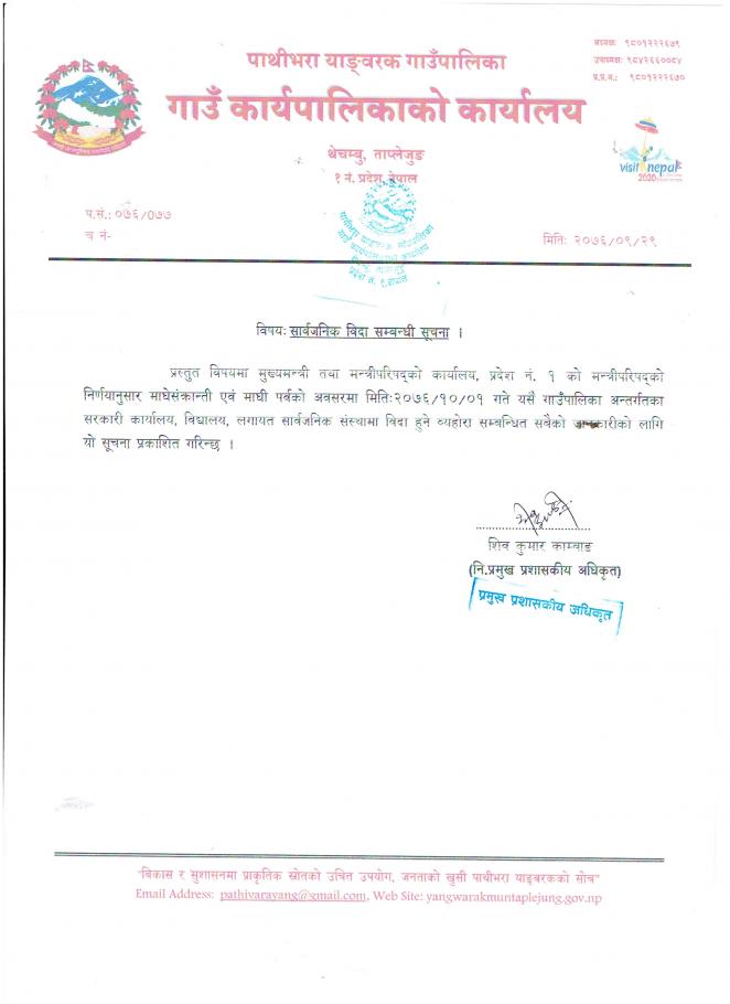 सार्वजनिक बिदा सम्बन्धि सुचना