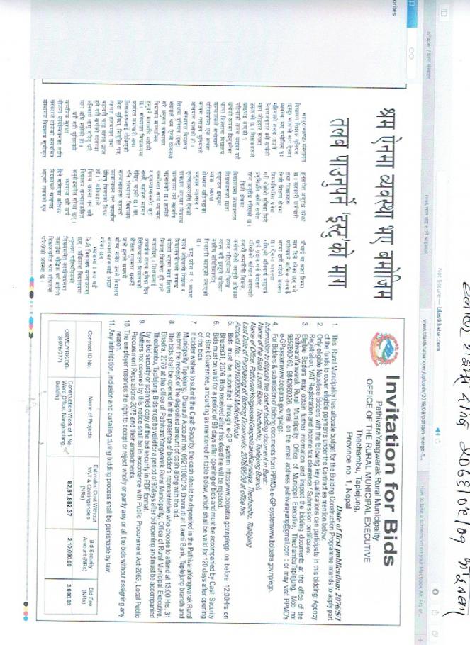 यस गाउँपालिकाको छैठौ गाउँ सभाद्वारा विनियोजित रकमबाट वडा नं. १ नाङखोल्याङको वडाको प्रशासकीय भवन निर्माणका लागि विद्युतीय खरीद समेतको सूचना ORME/YRK/OB-03(076/77) प्रकाशन गरीएको छ ।