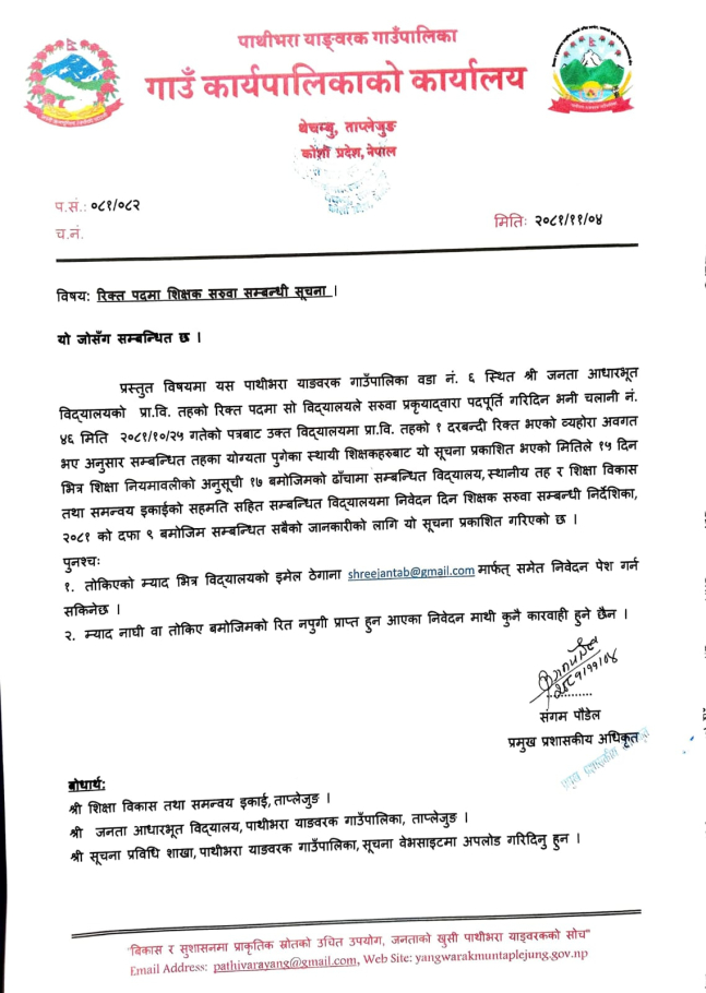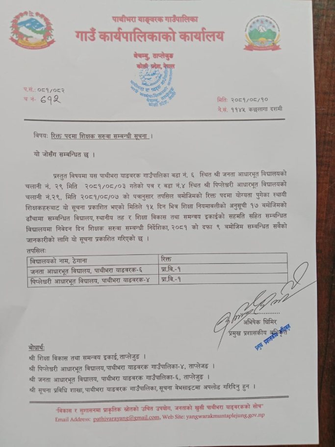 रिक्त पदमा शिक्षक सरुवा सम्बन्धी सूचना ।