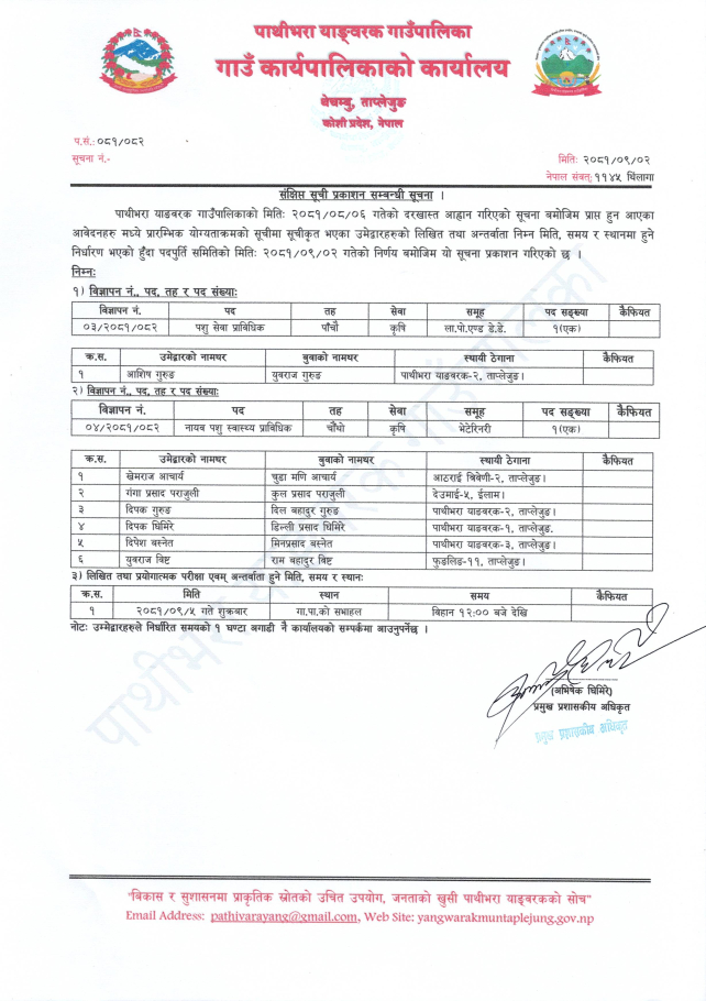 मनोसामाजिक परामर्शदाताको विज्ञापनका लागि संक्षिप्त सूची प्रकाशित गरिएको सूचना ।