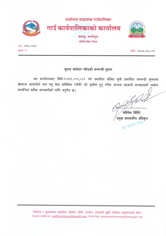 सूचना संशोधन गरिएको सम्बन्धी सूचना ।