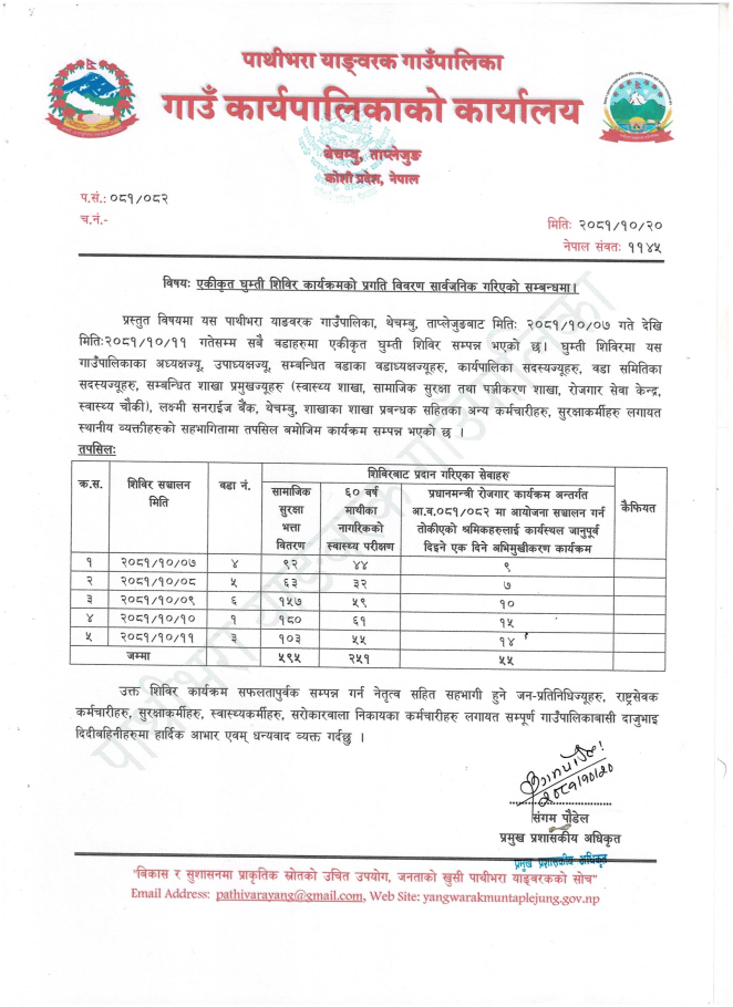 एकीकृत घुम्ती शिविर कार्यक्रमको प्रगति विवरण सार्वजनिक गरिएको सम्बन्धमा