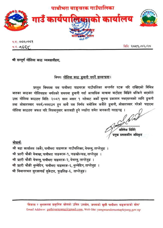 गोलिया काठ ढुवानी नगर्ने सम्बन्धमा