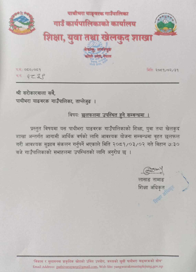 पाथीभरा याङवरक गाउँपालिकाको आ.व. ०८१/०८२ को विनियोजन विधेयक र राजश्व अनुमान