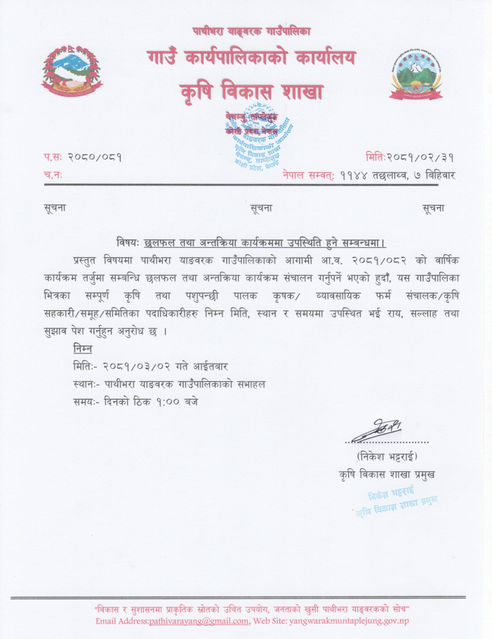 आ.व. ०८१/०८२ को वार्षिक बजेट तथा कार्यक्रम तर्जुमाका लागि यहाँहरुको राय, सल्लाह र सुझाव सङ्कलन
