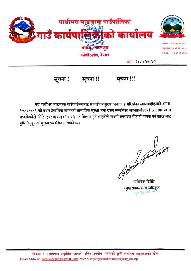 सामाजिक सुरक्षा भत्ता सम्बन्धित लाभग्राहीहरूको खातामा जम्मा भइसकेको सूचना