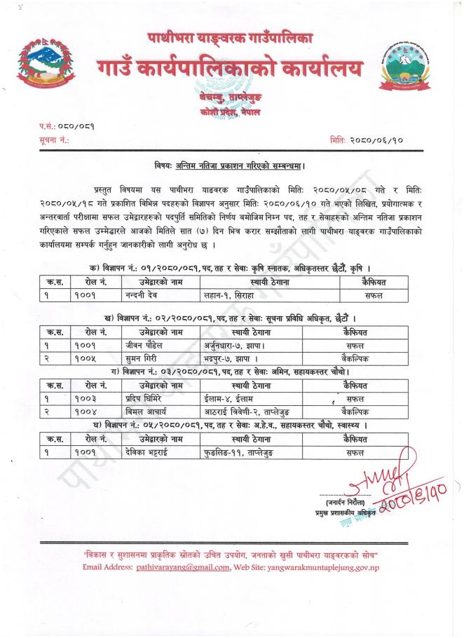 अन्तिम नतिजा प्रकाशन गरिएको सम्बन्धमा।
