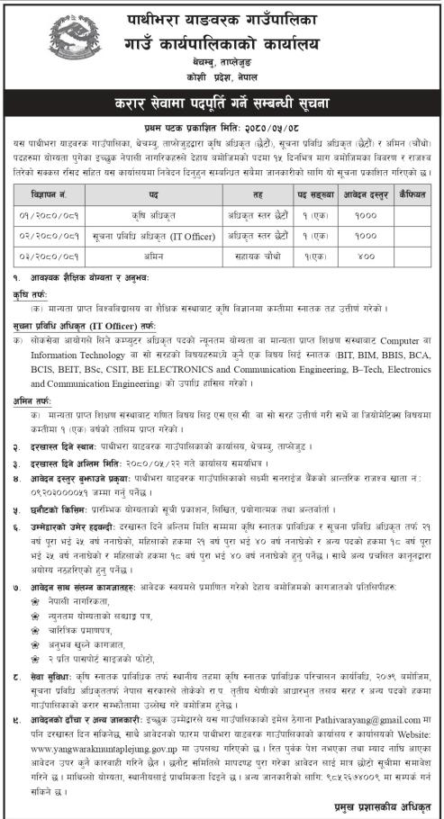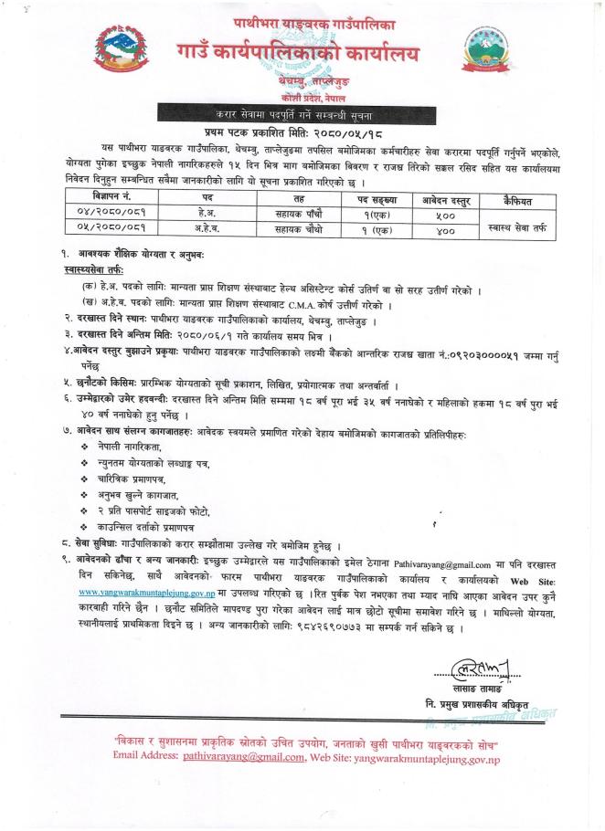 करार सेवामा पदपूर्ति गर्ने सम्बन्धी सूचना ।