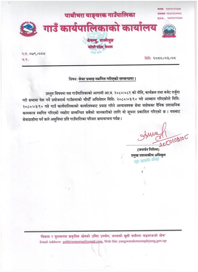 सेवा प्रवाह स्थगित गरिएको सम्बन्धमा ।