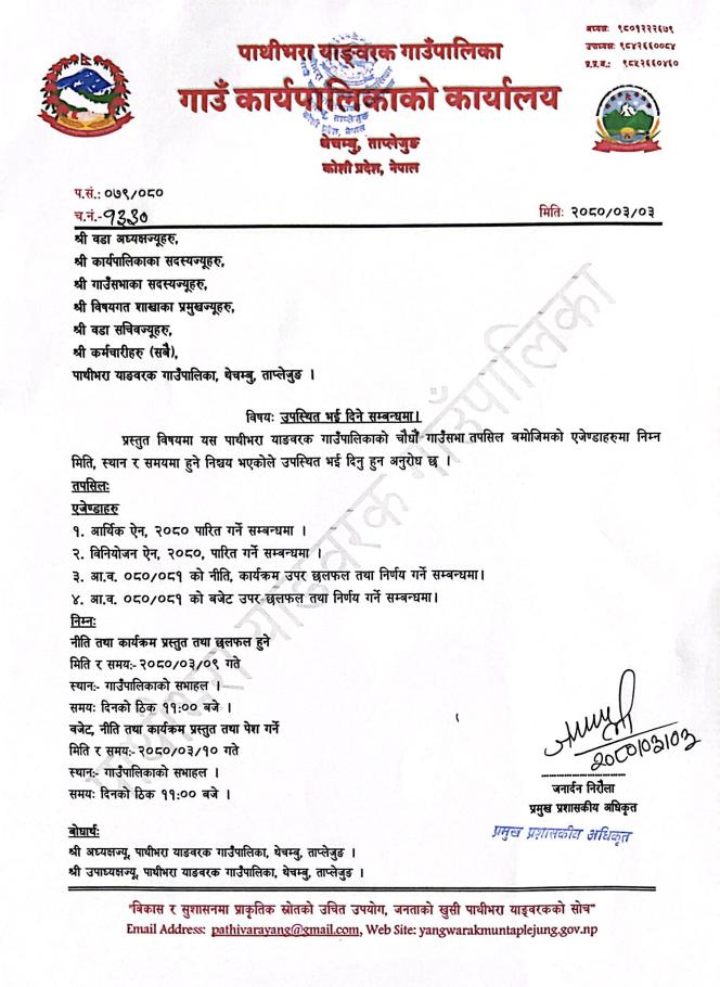 पाथीभरा याङवरक गाउँपालिकाको आ.व. ०८०/०८१ को नीति, कार्यक्रम तथा बजेट किताब