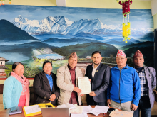 अध्यक्ष केशरकुमार सूब्बा प्रमुख प्रशासकीय अधिकृत संगम पौडेललाई कार्यसम्पादन सम्झौता प्रदान गर्नु हुँदै ।