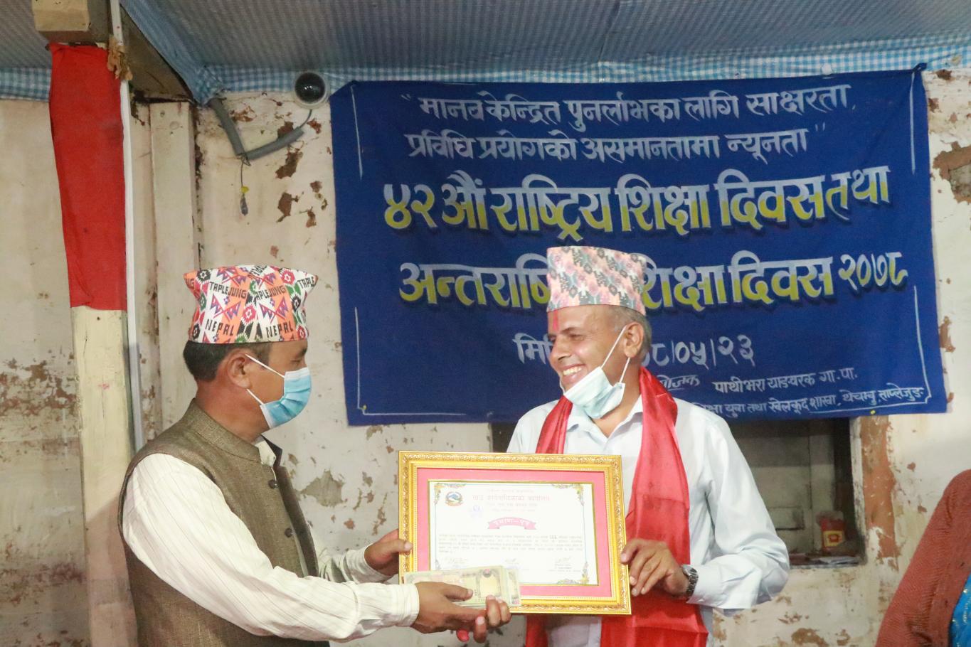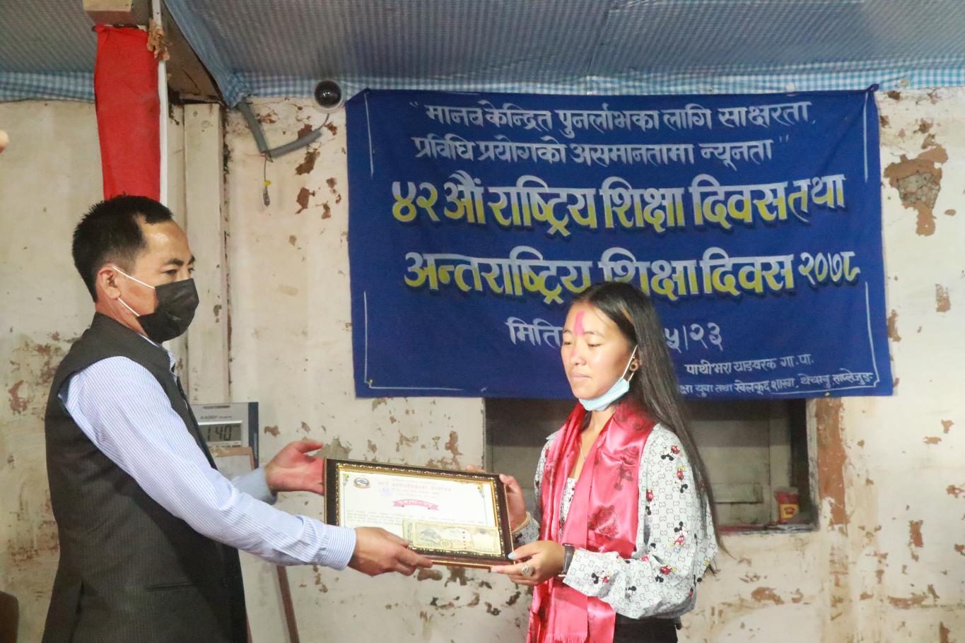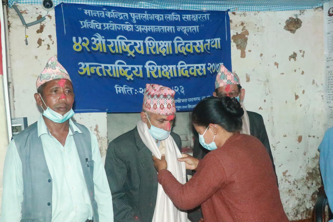 हिजो ४२ औं शिक्षा दिवस तथा अन्तर्राष्ट्रिय साक्षरता दिवसको उपलक्ष्यमा सेवा निवृत्त शिक्षक साथै SEE मा उत्कृष्ट GPA ल्याउने विद्यार्थीहरु र विद्यालयहरुलाई सम्मान गर्दाको केहि तस्बिरहरु |